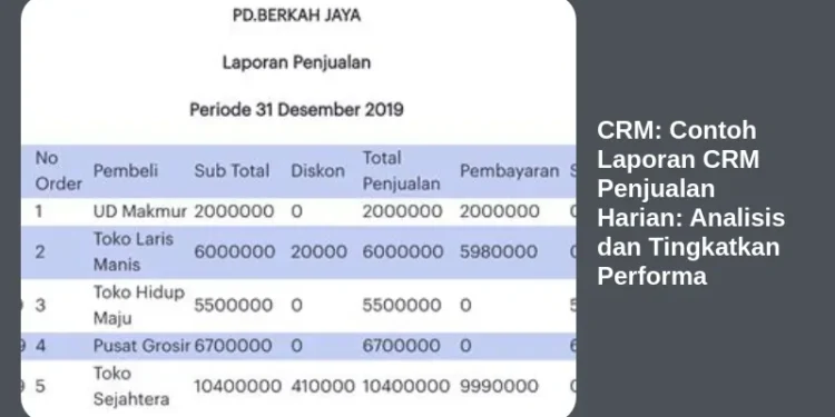 Apakah Anda seorang pemilik bisnis atau manajer penjualan yang sedang berjuang untuk meningkatkan performa tim penjualan Anda? Jika iya, Anda tidak sendirian! Banyak bisnis menghadapi tantangan yang sama. Salah satu kunci untuk meningkatkan performa penjualan adalah dengan menggunakan Customer Relationship Management (CRM) dan menganalisis laporan penjualan harian secara efektif. Artikel ini akan membahas secara mendalam tentang CRM: Contoh Laporan CRM Penjualan Harian, cara menganalisisnya, dan bagaimana menggunakannya untuk meningkatkan performa penjualan Anda secara signifikan. Mari kita mulai!
