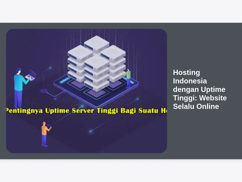 Hosting Indonesia dengan Uptime Tinggi adalah investasi penting untuk kesuksesan website Anda. Website yang selalu online akan memberikan pengalaman terbaik bagi pengunjung, meningkatkan kepercayaan, dan membantu Anda mencapai tujuan Anda. Dengan memilih penyedia hosting yang tepat dan melakukan optimasi website, Anda dapat memastikan website Anda selalu online dan berkinerja optimal. Jangan ragu untuk berinvestasi lebih banyak pada hosting yang berkualitas, karena manfaatnya jauh lebih besar daripada biayanya. Ingat, website Anda adalah wajah bisnis Anda di dunia maya. Jaga agar selalu tampil prima dan dapat diandalkan.